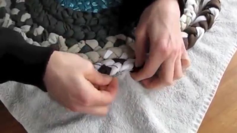 Лентите от стари дрехи и одеяла с ширина 1,5-2 см са чудесен материал за килими. Изрежете нещата в кръг, без да ги откъсвате, и съединете парчетата с шевове на ръка.