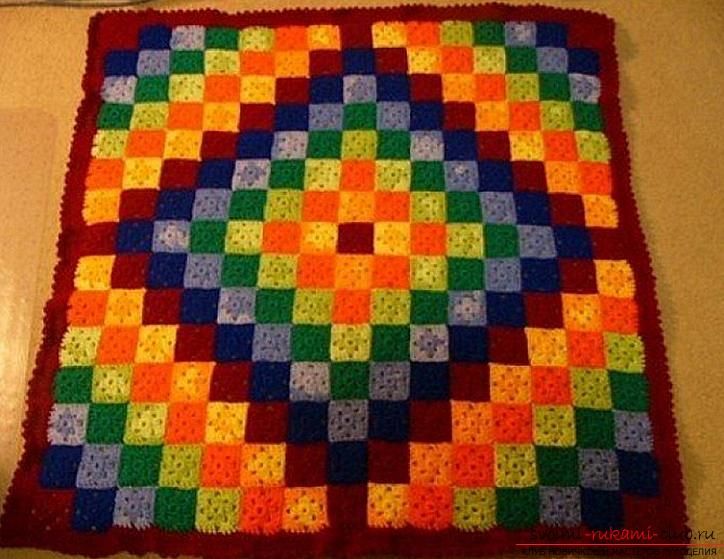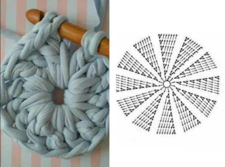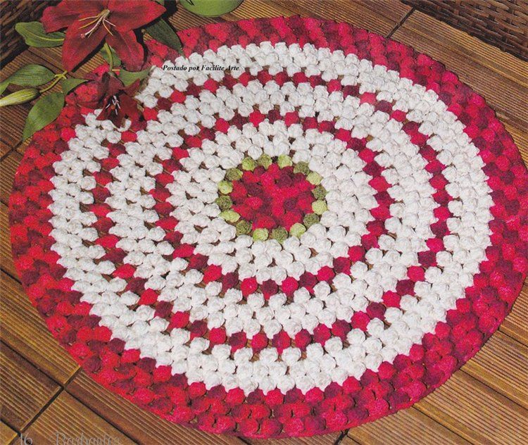 Плетенето по една от стените или редуването им дава оригиналния ефект на венец. За начинаещите е лесно да следват квадратни, кръгли и овални форми. Когато комбинирате ярки и контрастни прежди, получавате японски килими.