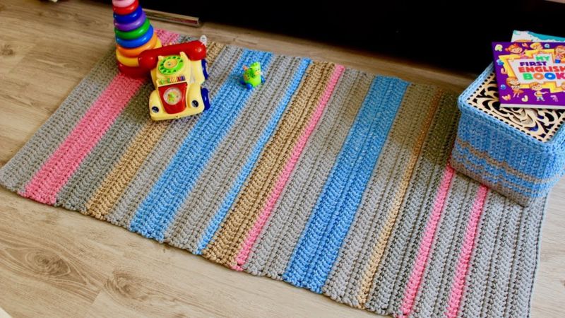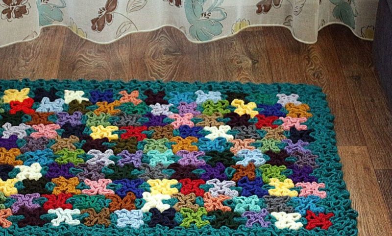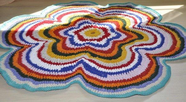 Многоцветният килим често е комбинация от няколко цвята от останала прежда. В детската стая, всекидневната или вилата това е забележителна мебел. Тя ще внесе определено настроение, например в провинциален стил.