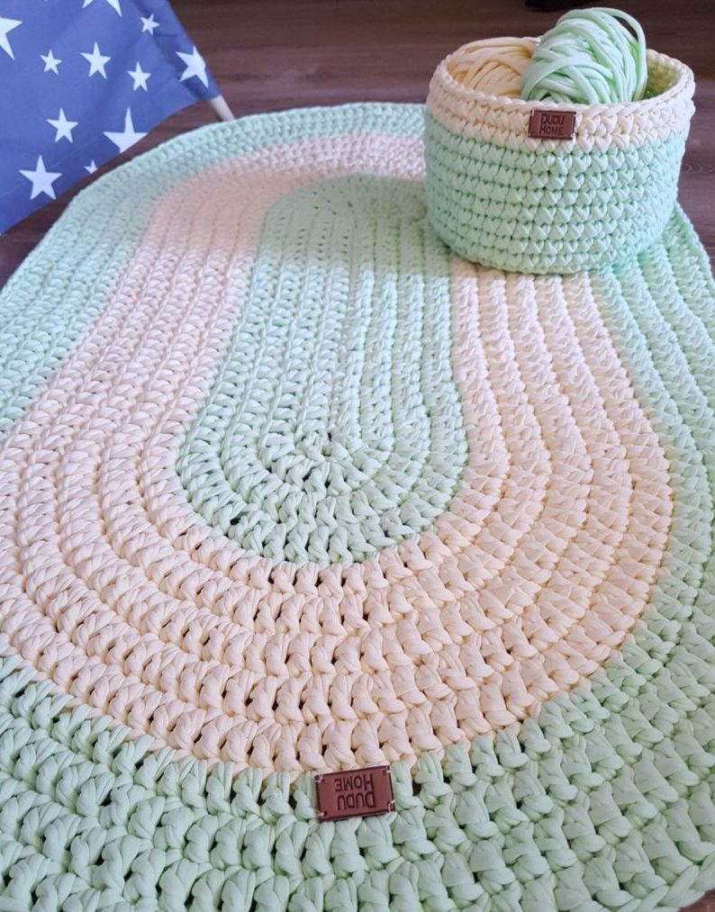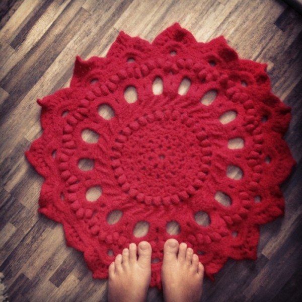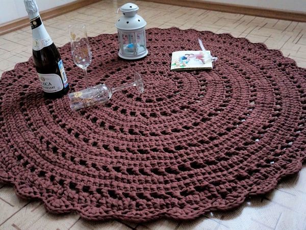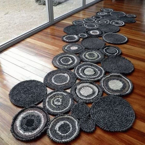 Поставете кръгли изтривалки до вратите, до леглата, върху табуретки, сгъваеми столове и детски столчета. Привлекателни и ефирни, те са свързани с дебели конци. Често ръбовете са ажурни, вълнообразни.