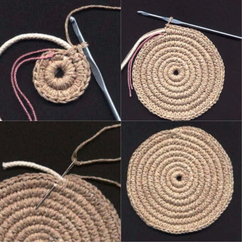 Започнете да плетете на една кука две или три бримки и ги затворете в кръг. На първия ред пришийте 6 шева без зашиване, като удвоявате броя им на всеки следващ ред.