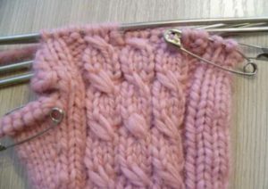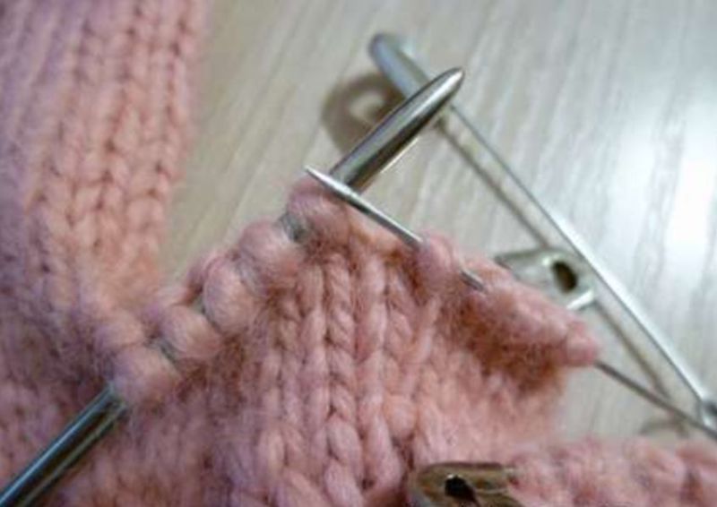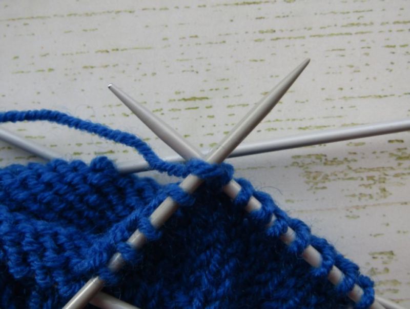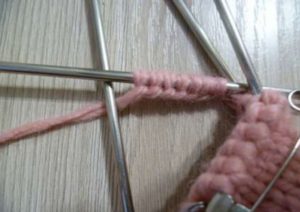 - те се плетат на редуващи се редове, като в самия край примките се отстраняват и другата страна се плете наведнъж, като се започва от малкия пръст;
