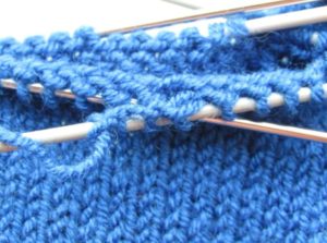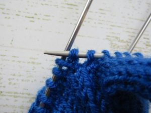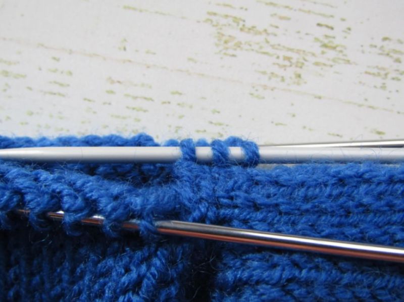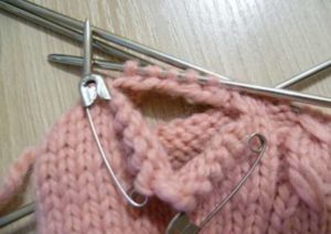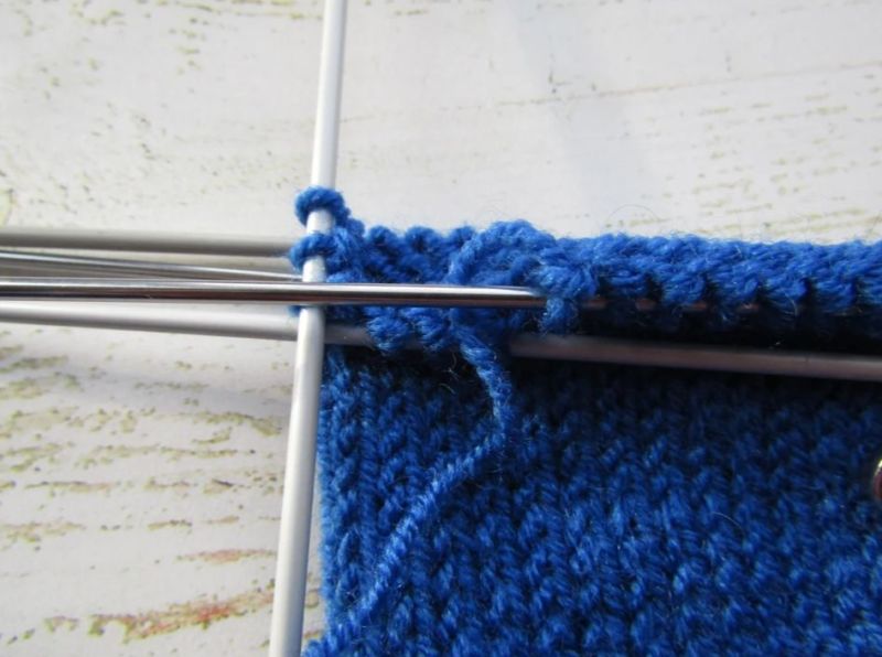 - след това направете ВР: примките, поставени върху иглите, се отстраняват и същият брой примки се вдигат през плетения край;