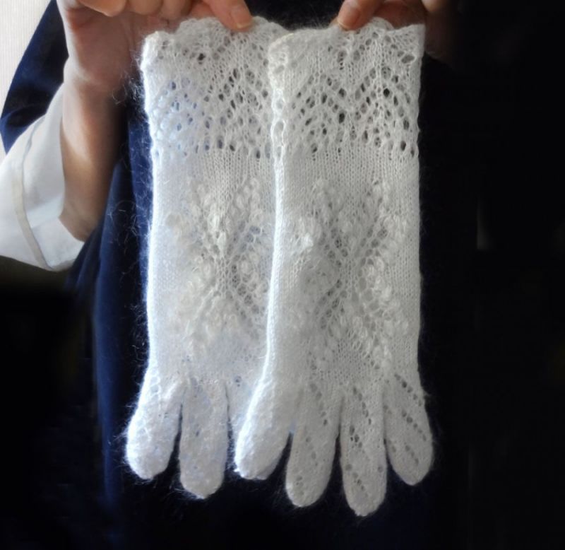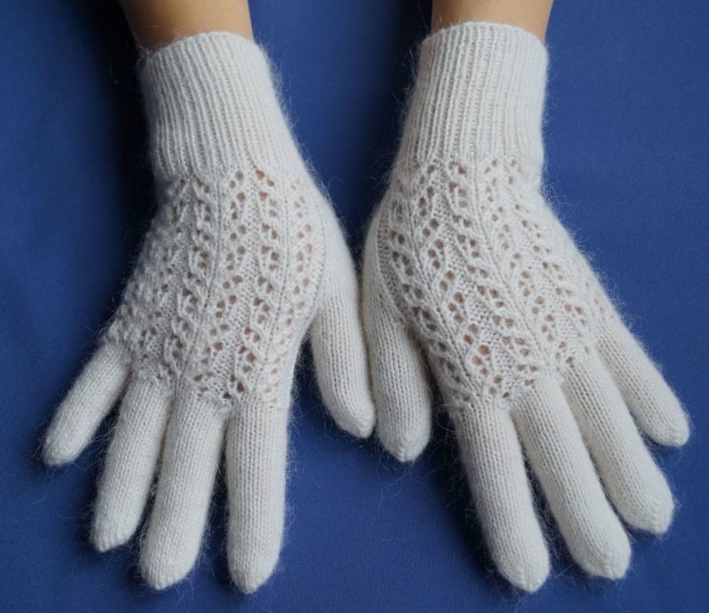 - Продължавайте да плетете с една прежда в мрежестия модел, който е индивидуален за всяка ръкавица.