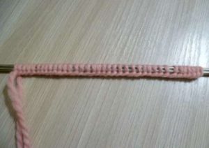 - Плетене на шал - редуване на прави и неправилни бримки (RL), дължината трябва да е 1,5-2 см (за подгъвите);