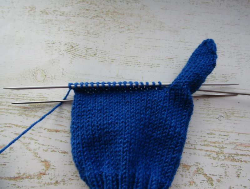 - докато палецът влезе в палеца, той трябва да се плете с прав бод;