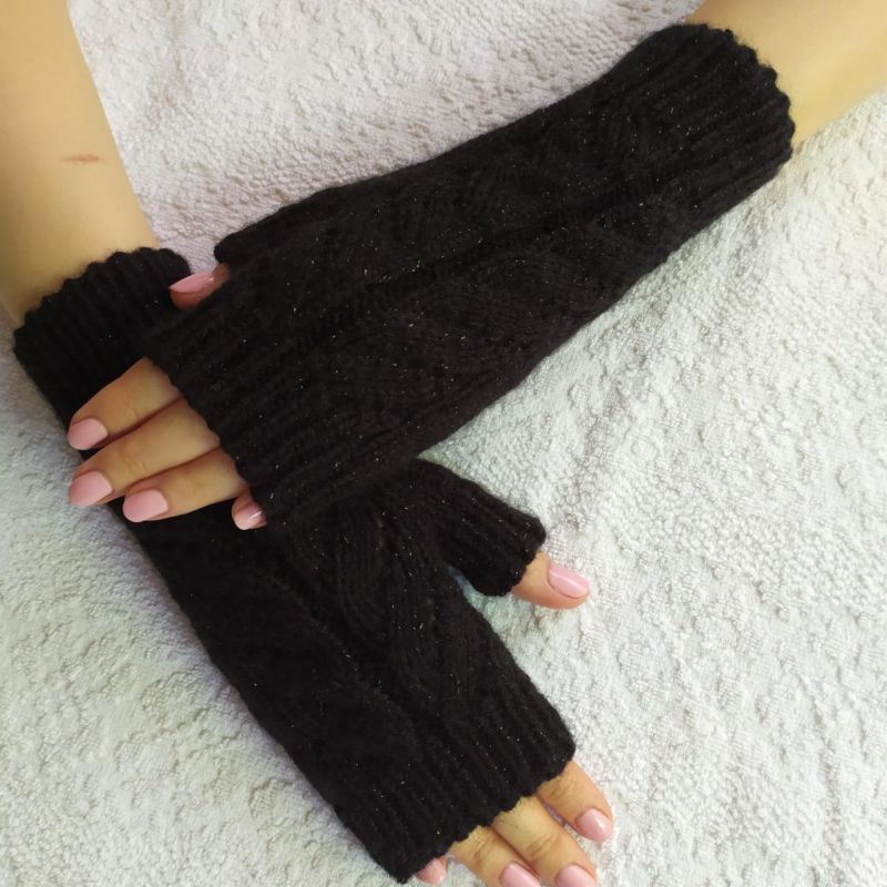 Всички стъпки се повтарят на втората стрелка. За начинаещите е още по-лесно да плетат ръкавици без пръсти, използвайки този модел.