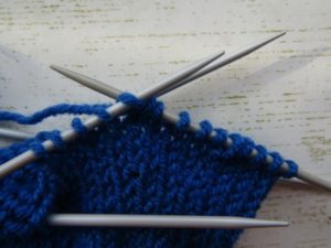 - Първите 2-3 см от парчето са изплетени в класическа плетка (2 лакътя и 2 ПР);
