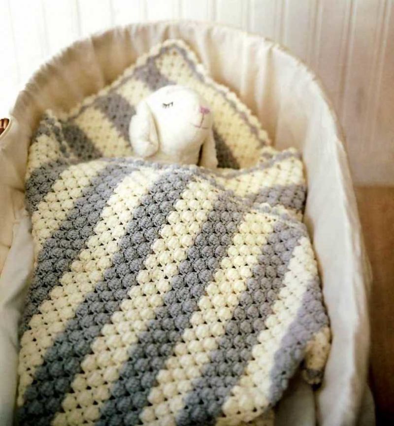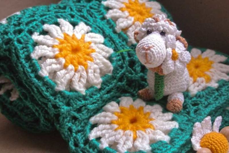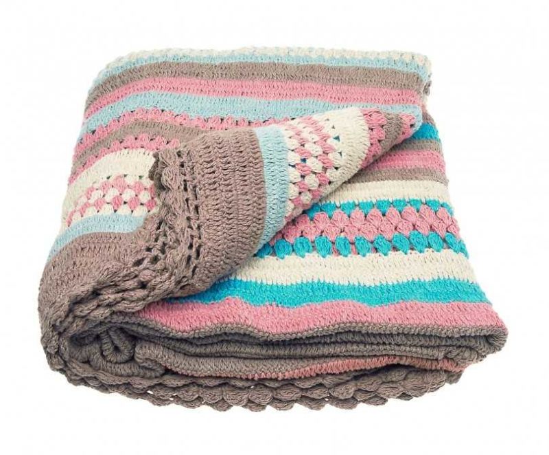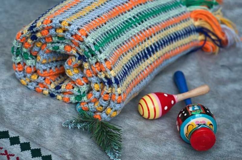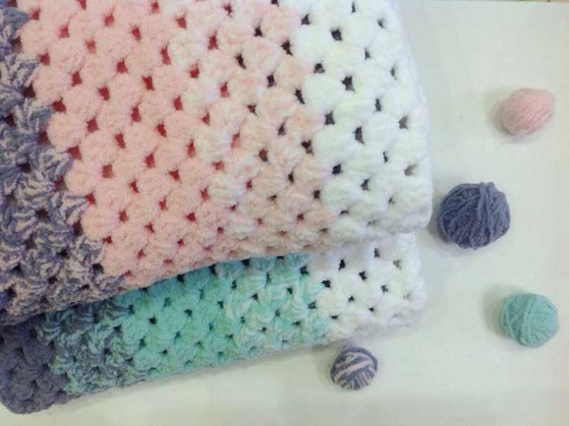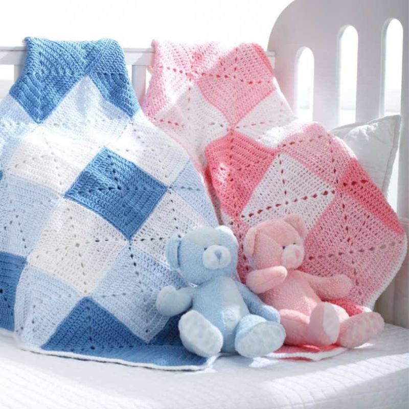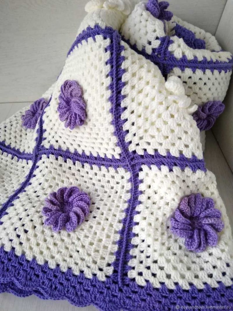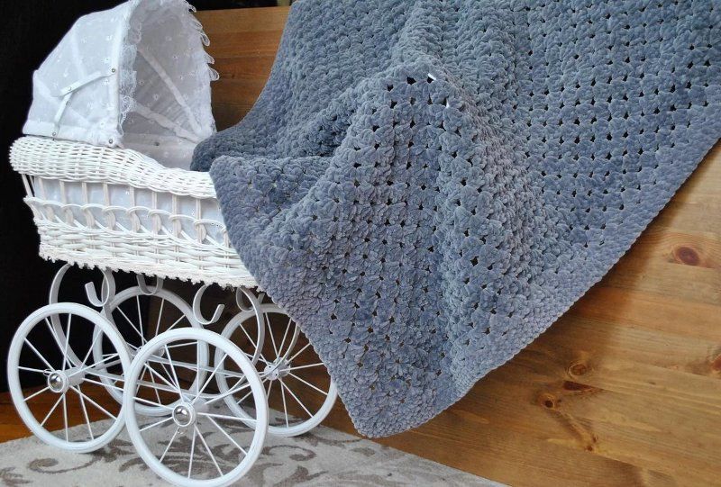 Пет мотовилки са достатъчни за одеяло с размери 85х85 см и начинаещата госпожица няма нужда да мисли как да изплете бебешко одеяло за количка, да речем, на една кука.