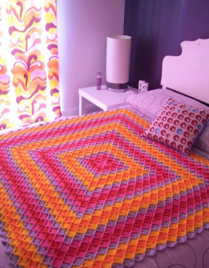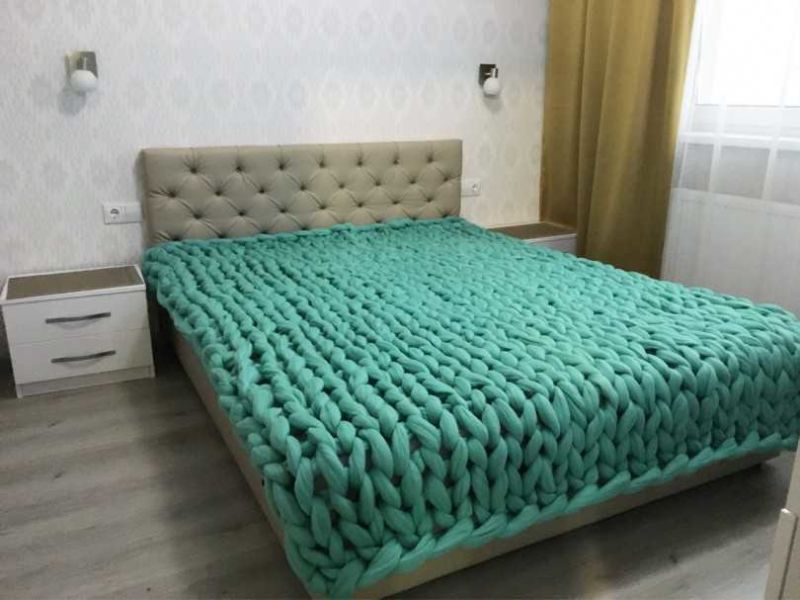 Покривка за легло, изработена с дебели конци, ще бъде готова за седмица или две, докато пухкаво каре може да се завърши за няколко часа работа.