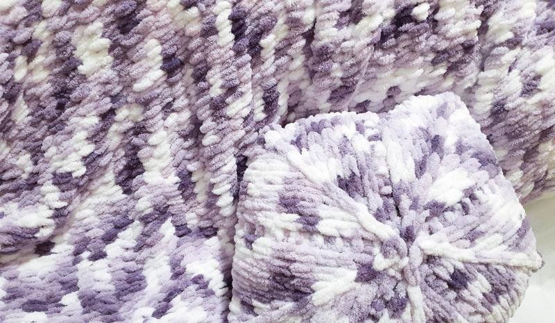 Покривката за легло, изработена от голяма плетка, изглежда много привлекателна и луксозна. Изберете дебела прежда или плюшена прежда с готови примки. Теглото на такова снопче е 100 г, а дължината на преждата - 9-10 м.