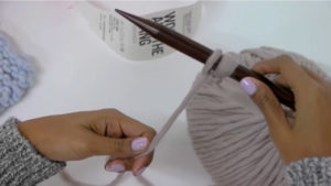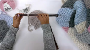 Когато приключите с една топка и преминете към друга, последната примка се отрязва в долната част, за да се получи малка опашка. Направете същото и с ново влакно. Опашките са вързани заедно. Полученият възел е скрит вътре.
