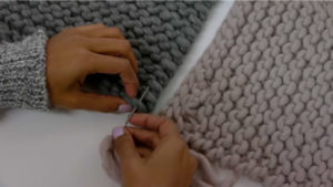 В последния ред всяка предходна бримка се поставя върху следващата. Краищата на продукта могат да бъдат подрязани с рамка.