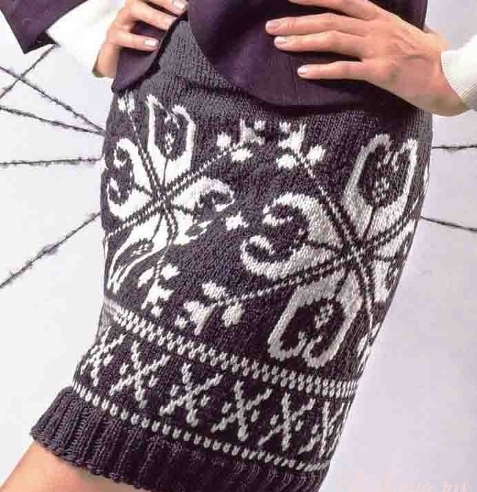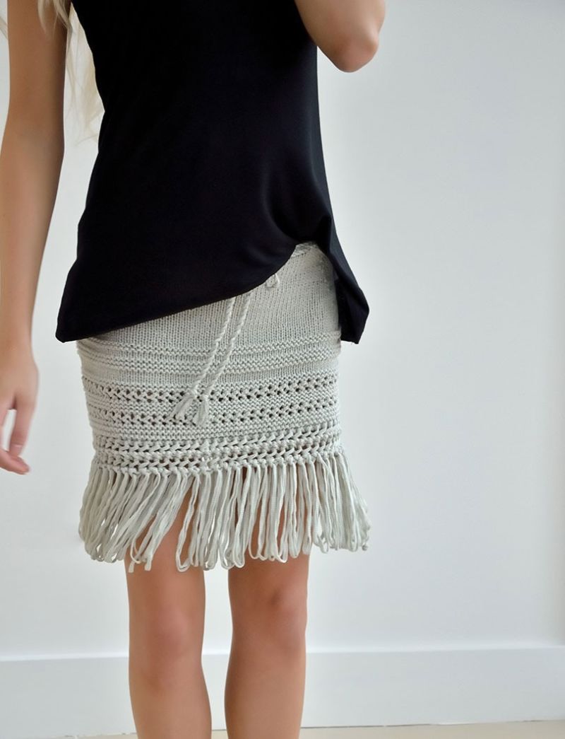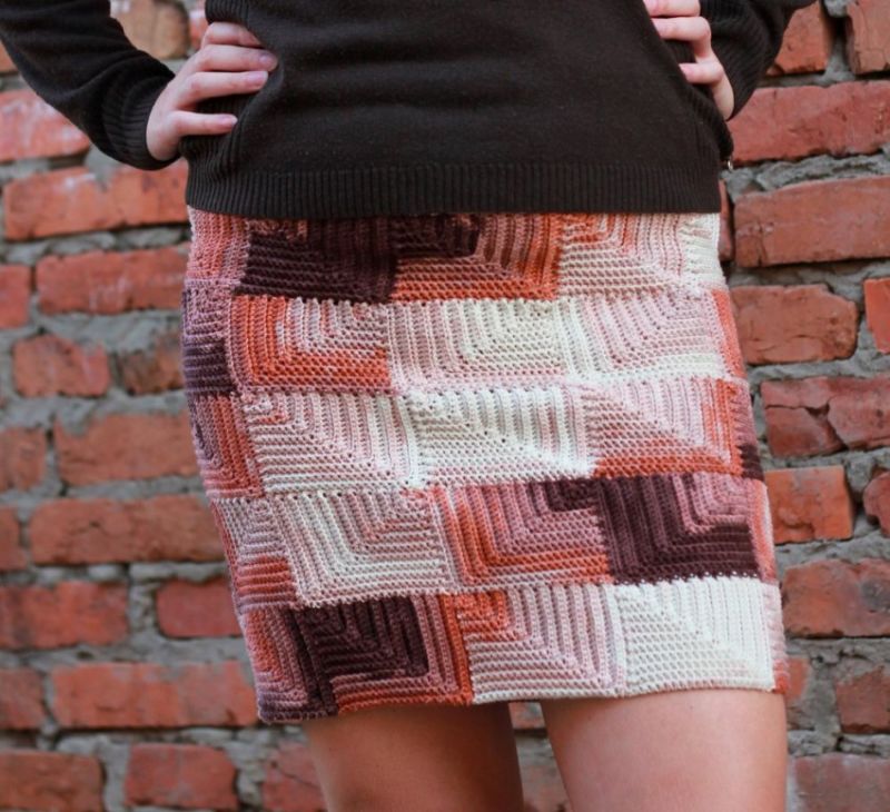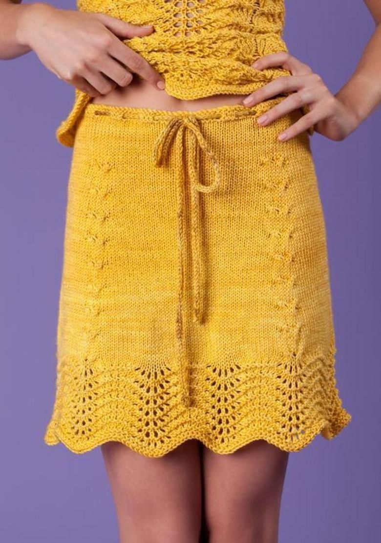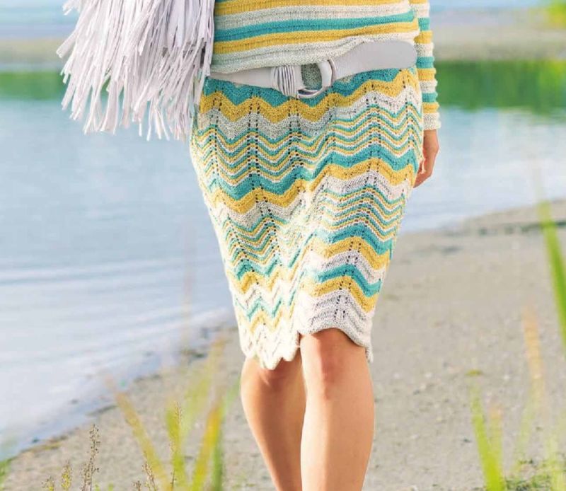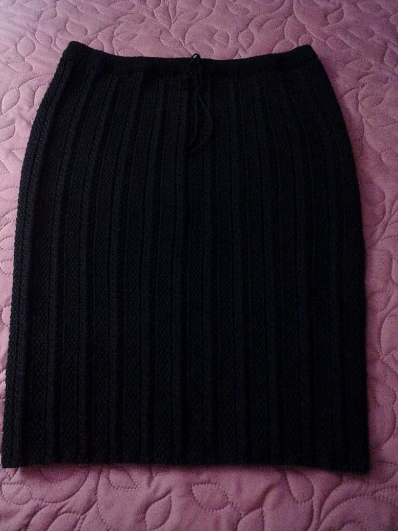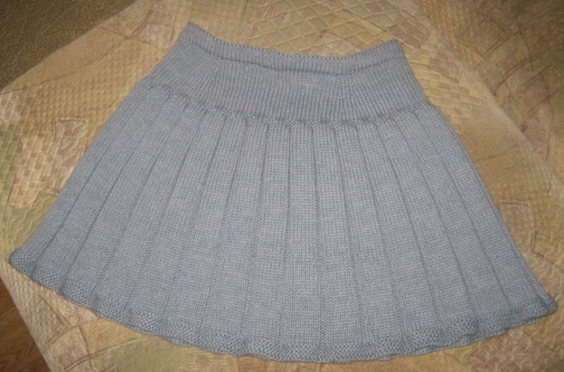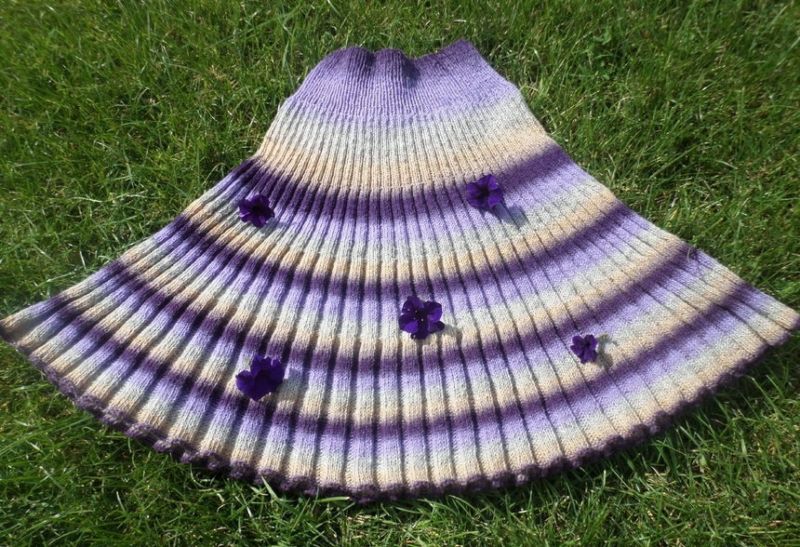 Няма да ви е необходим модел, за да направите тази пола. Състои се от две половини, които впоследствие се зашиват. Използва се напречно плетене.