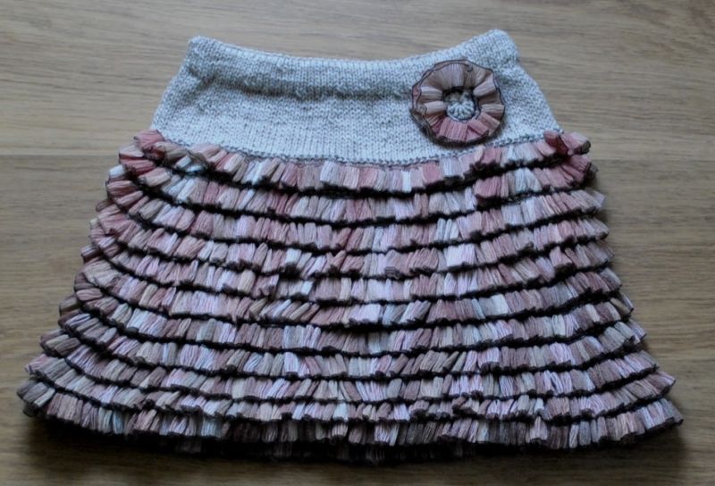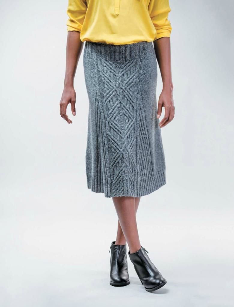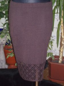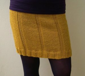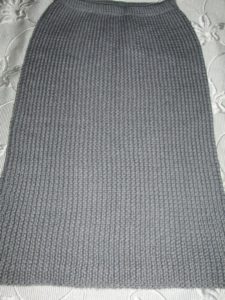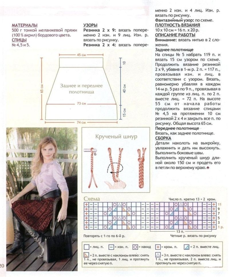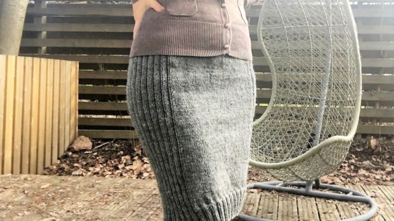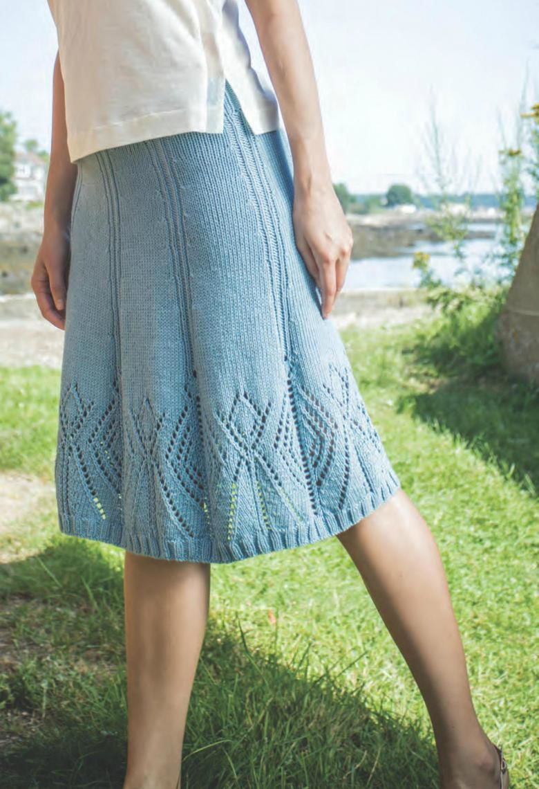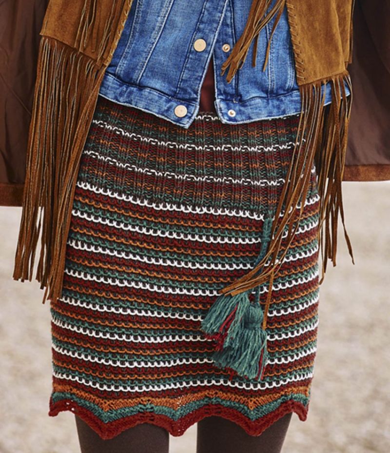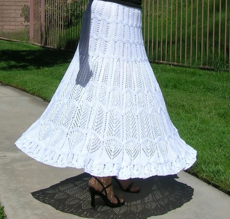 Няма да ви е необходим модел, за да направите тази пола. Състои се от две половини, които впоследствие се зашиват. Използва се напречно плетене.