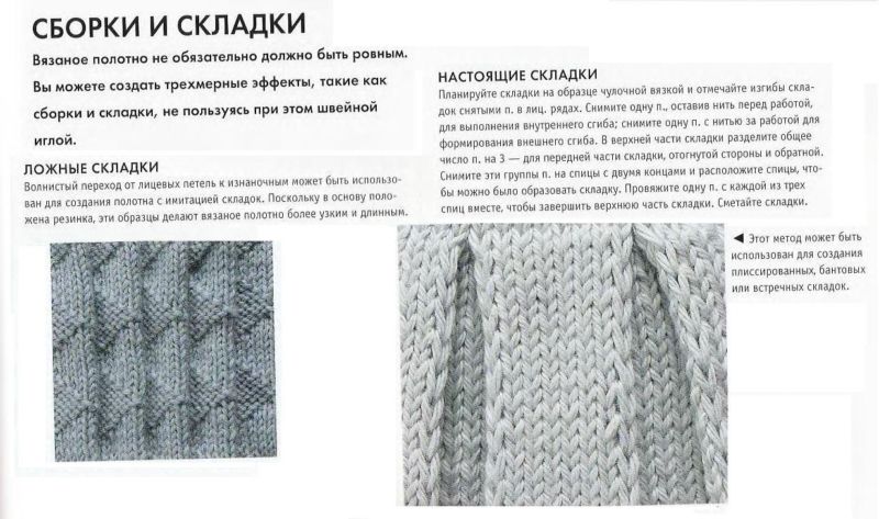 Използването на клинове, направени със скъсени редове, създава ефект. Чрез плетене през шарките се създава видим ефект на плисе: