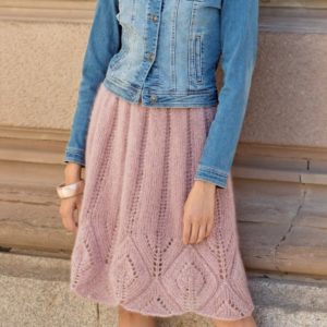 Мохерът се използва най-добре в модела на пола-слънце. Тънък, многожичен, той се плете с кръгли игли, а крайният продукт е ефирен, с красиви гънки.