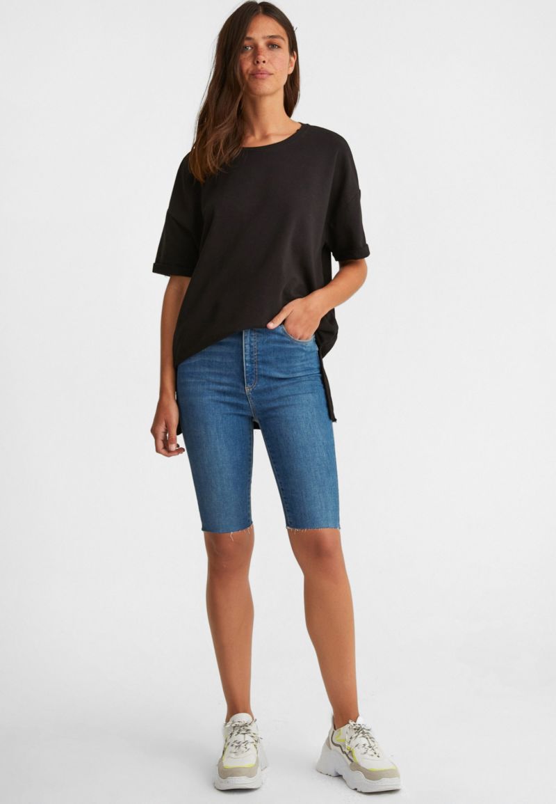 - Изберете удължени блузи с тесни дънки.