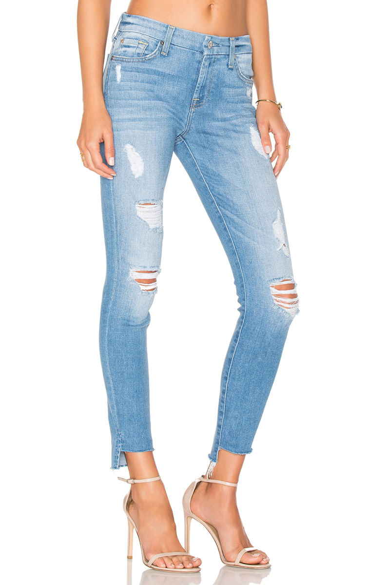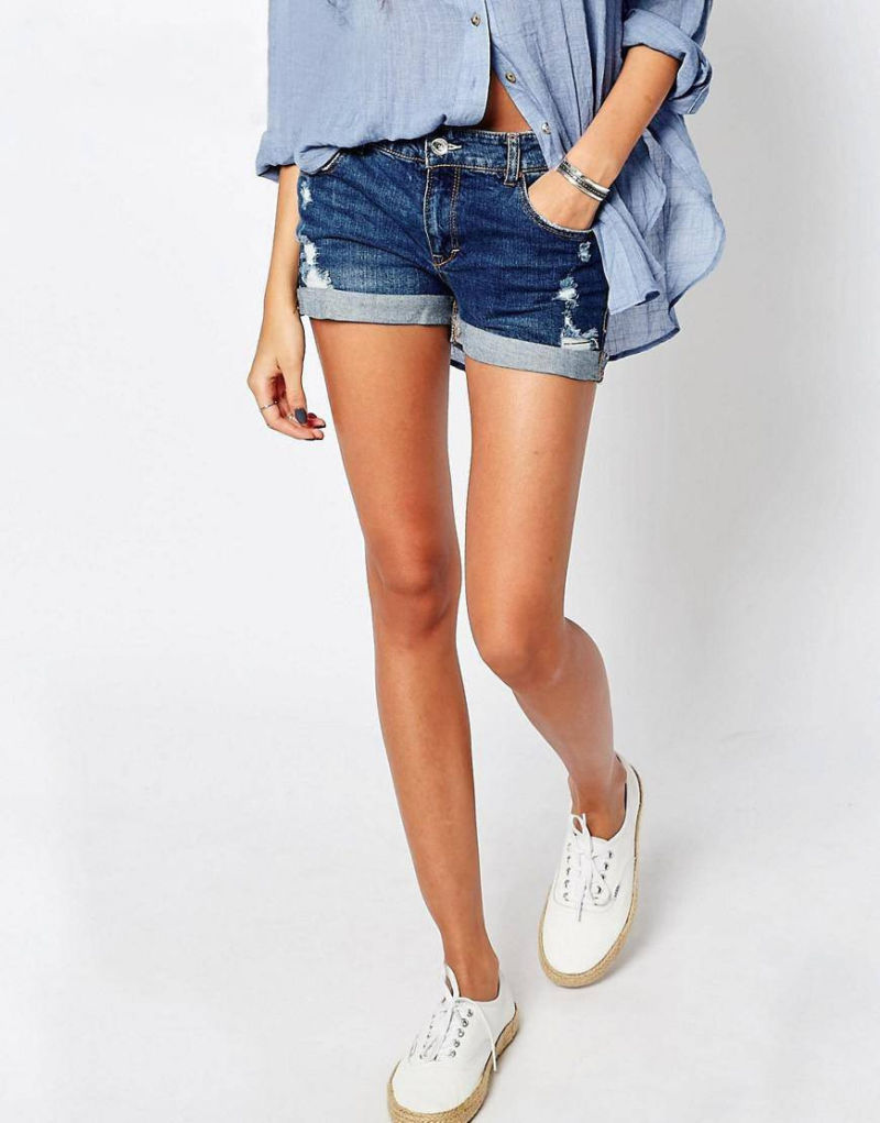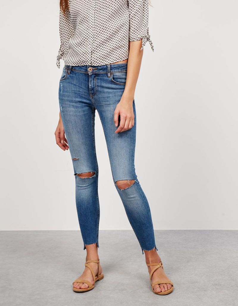 - Изрязани - Дънките с дължина до глезена са най-подходящи за дейности на открито. Разстоянието от ръба на панталона до обувките не трябва да е повече от 2-3 см.