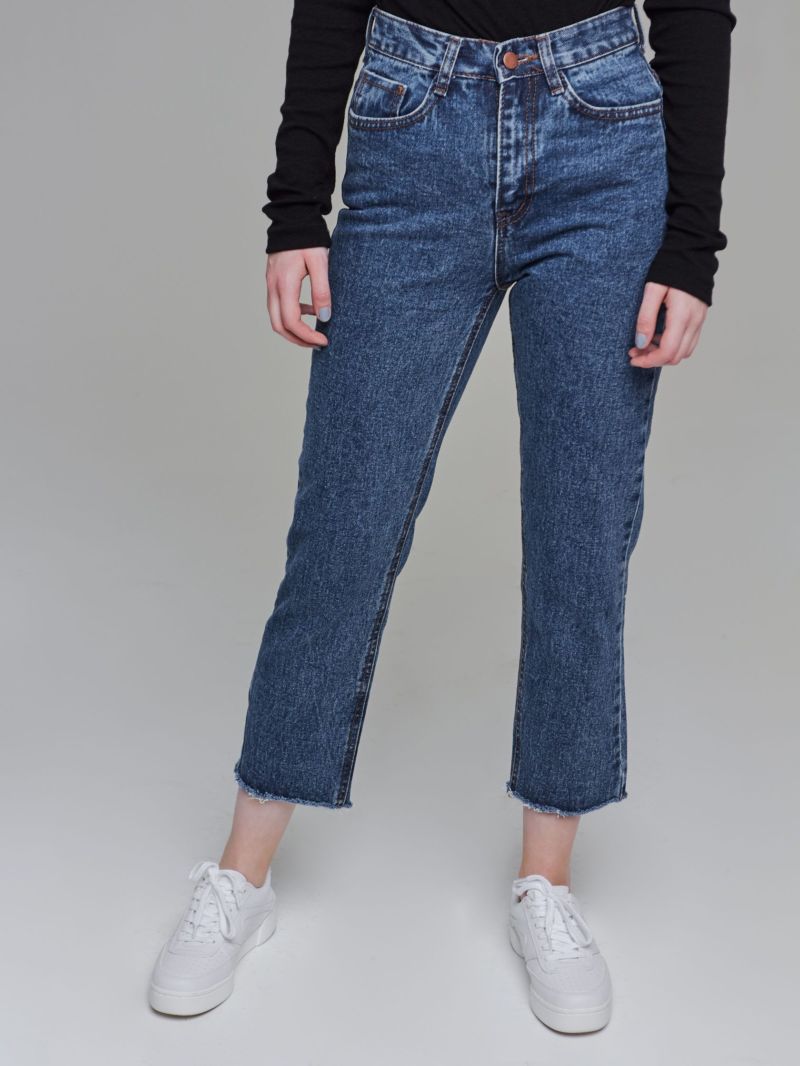 - Права кройка - дънките с права кройка трябва да могат да покриват горната част на обувката и ръба на крака с разрез отпред. По-просто - дължина на панталона до средата на гърба. Височина от подметката на обувката не повече от 1-1,5 cm.