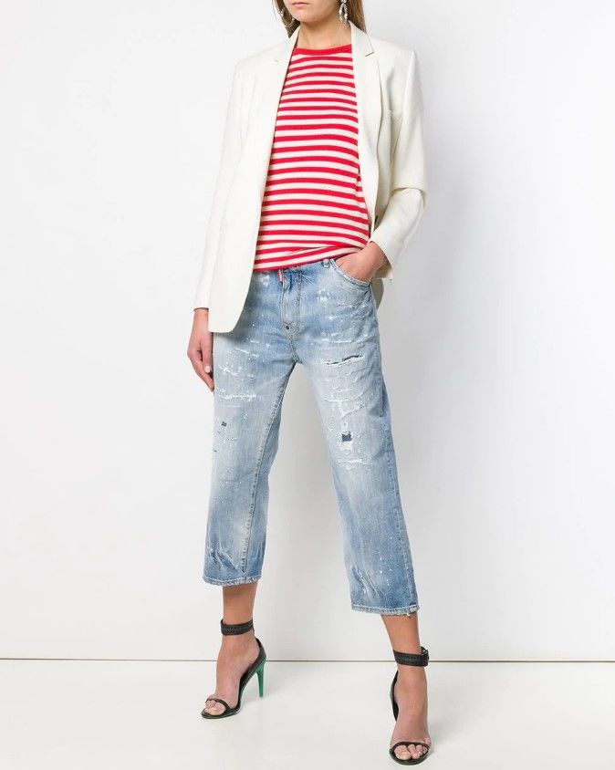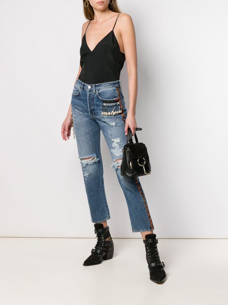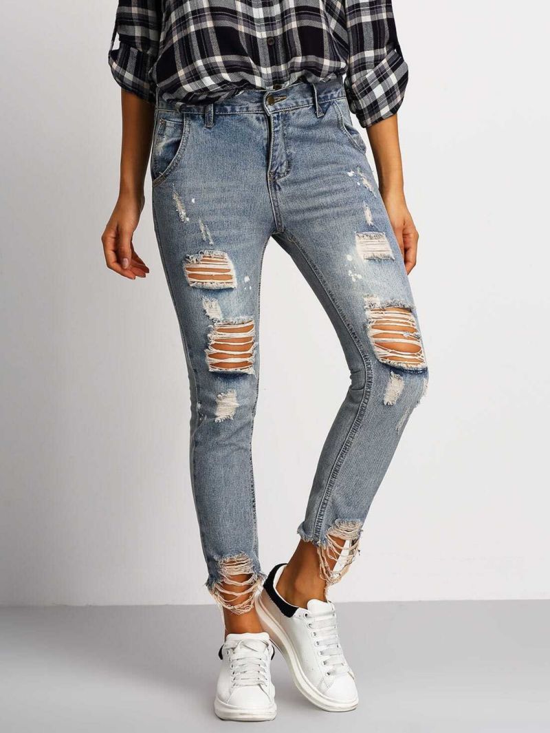 - Разкъсани дънки - дънките с дупки по периметъра или в произволен десен са идеални за разходки и неофициални събирания.