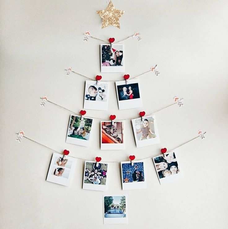 Едно доста оригинално решение е да се създаде коледна елха от снимки. Този вариант е подходящ и за тези, които няма къде да поставят коледната си елха. Отпечатайте любимите си снимки на семейството и приятелите си. След това изберете място, на което да го поставите. Подредете снимките във формата на коледна елха и ги прикрепете към стената с тиксо. Добавете коледно осветление. Готово!