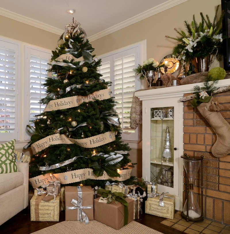 Можете да увиете чувала около основата на коледната елха. Това ще помогне да се скрие стойката, а цялостният вид на елхата ще изглежда доста оригинално.