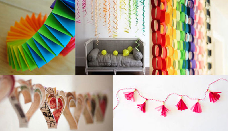 Можете да направите гирлянд и от стари вестници. Гирляндите са под формата на знамена, сърца и цветя.