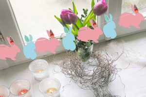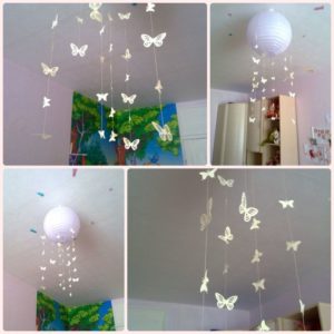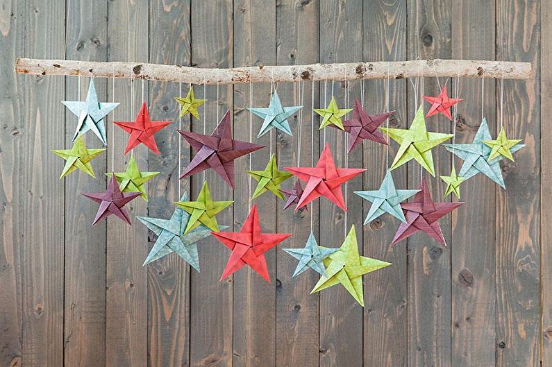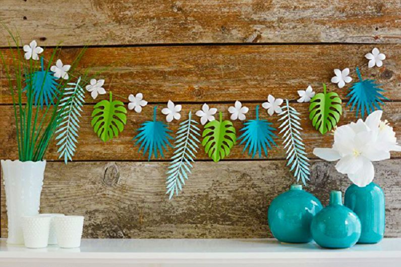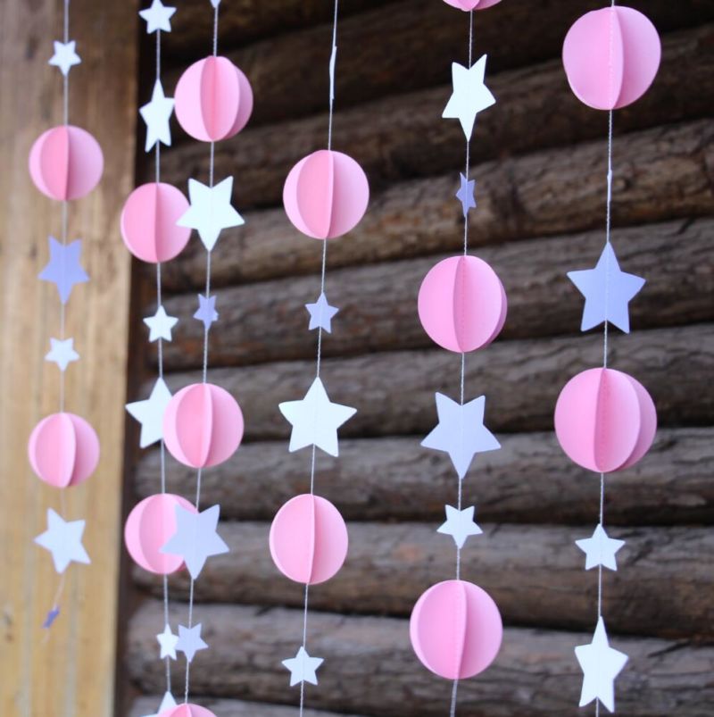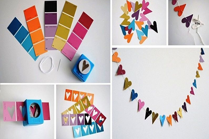 За изработването на гирляндата са ви необходими хартия, ножица, канап и лепило. След като сте направили необходимата форма, залепете я за връвчицата и опънете гирляндата от единия до другия ъгъл.