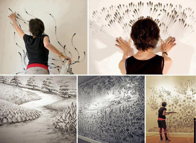 - Скица на стената. Скицата трябва да се направи с молив. На този етап можете да промените идеята на бъдещия чертеж, да прецизирате детайлите. Започнете с големи обекти, а след това уточнете детайлите.