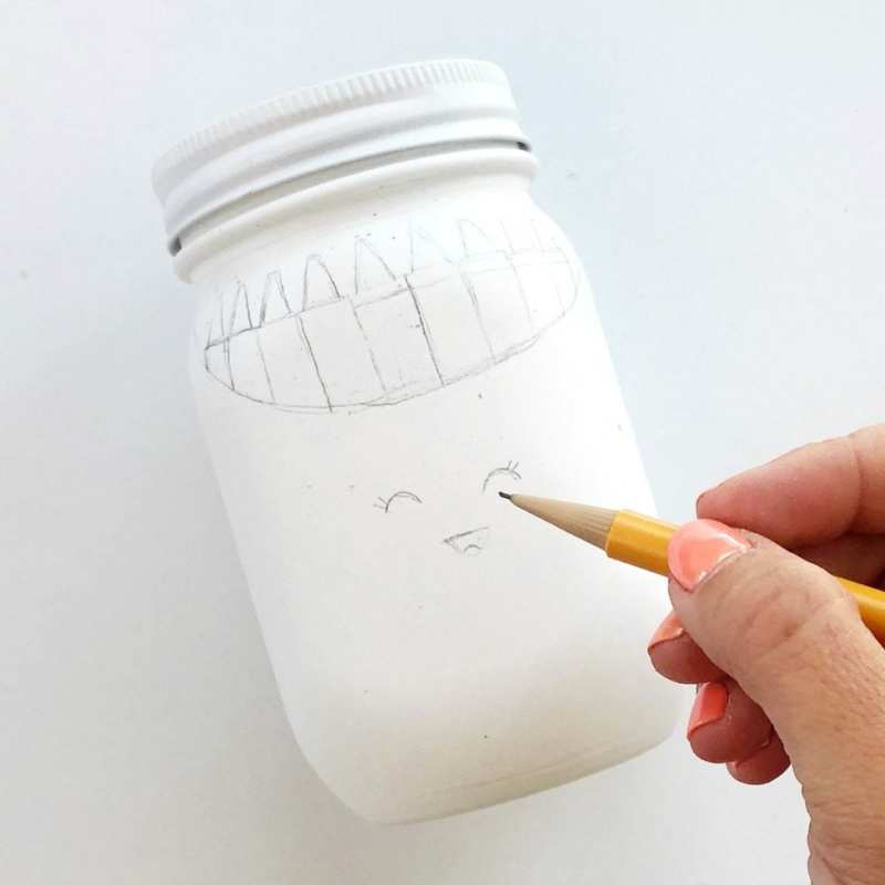 - С помощта на обикновен молив очертайте кръглите очи, носа и устата.