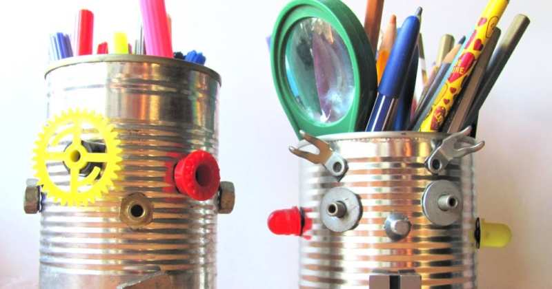 В стаята на момчето можете да направите оригинална поставка за моливи с робот.