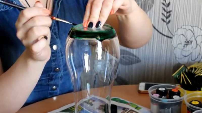 - С помощта на гъба, изрязана под ъгъл с нож и потопена в боя, боядисайте цялата стъклена повърхност.