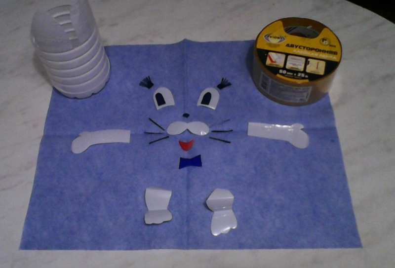 - Използвайте маркер, за да очертаете ушите на заека и контура на ръба на бъдещия организатор върху бутилката.