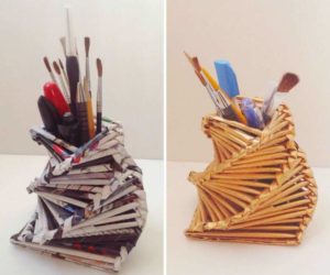 От този изхвърлен материал, който много хора изхвърлят на боклука, се получава чудесно нещо - поставка за моливи.