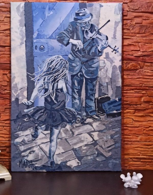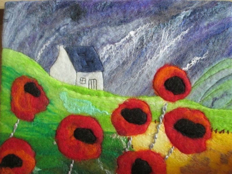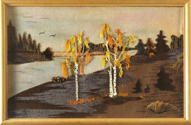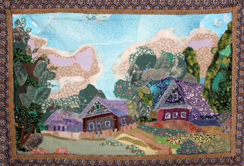 Пейзажите изглеждат чудесно в тази техника, която може да се използва върху мокър и сух плат. Картината е изработена върху лист от дървесни влакна или шперплат, покрит с естествен плат.