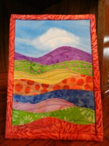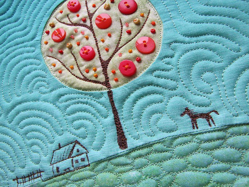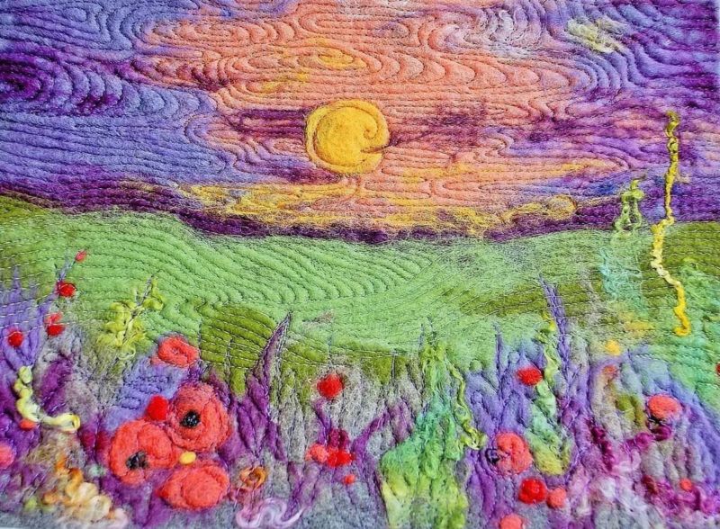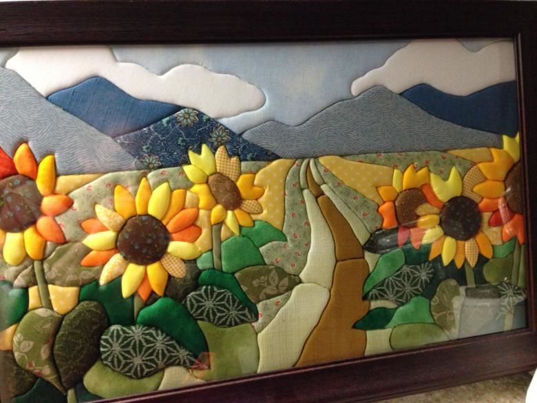 За предпочитане е да се работи с истинска картина, снимка или рисунка, която се пресъздава с нова техника върху едноцветен или цветен плат. Може да се добави нещо с четка, когато основната част на ръчно изработения пейзаж е готова.