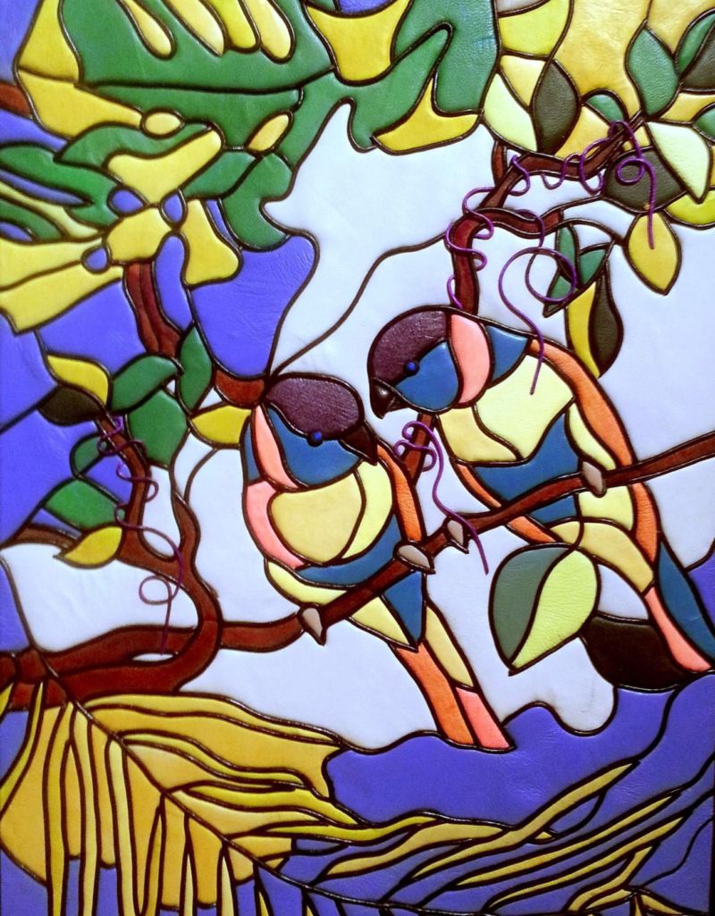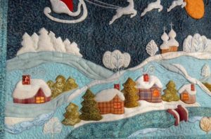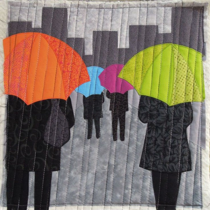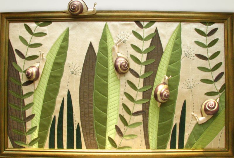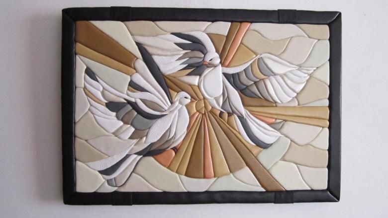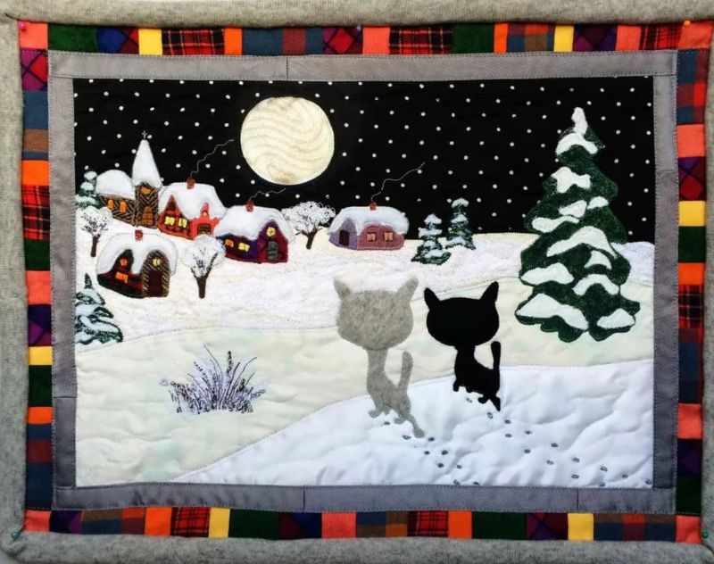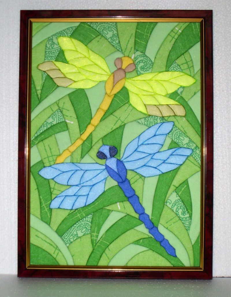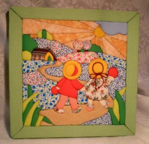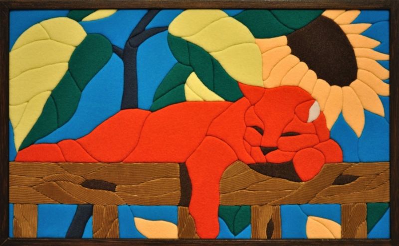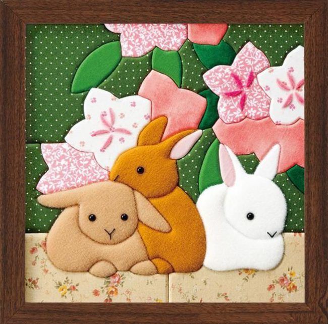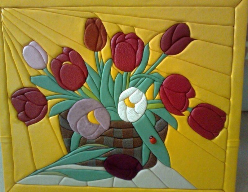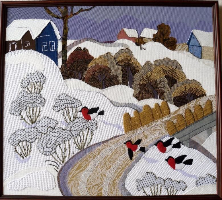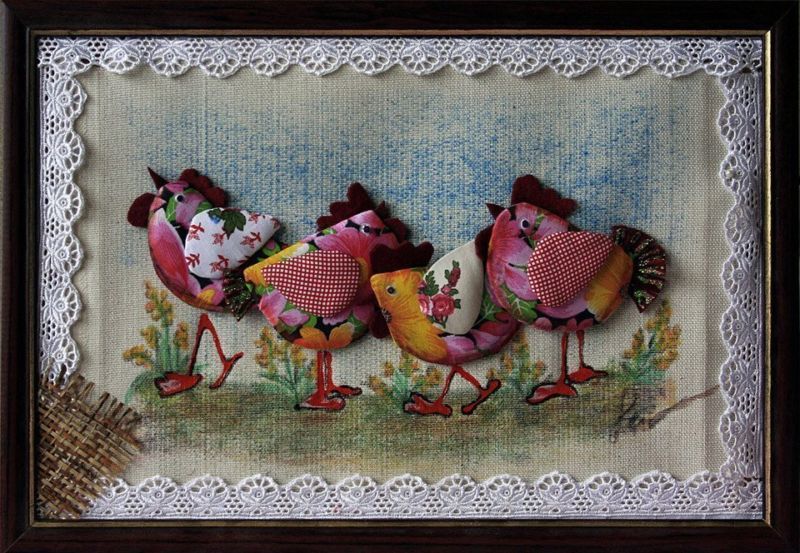 Интересно е да се наблюдава техниката на квилинг, при която елементи от картината от плат се зашиват върху основата (едноцветна или цветна), създавайки истински шедьовър.