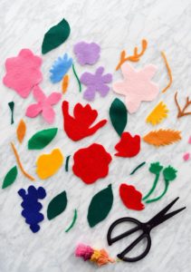Важно! Предимството на плъстения плат е, че не изисква обработка на отрязания край. Това улеснява значително създаването на триизмерни и плоски композиции от филц.