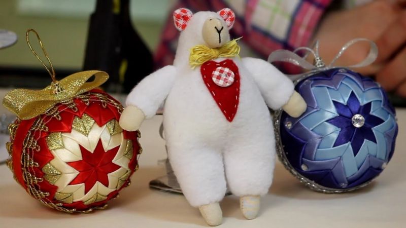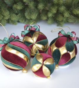 Полезен съвет! Със същата техника можете да направите домашна коледна украса, например на базата на топчета от пяна. Вместо коприна използвайте светъл лъскав плат.