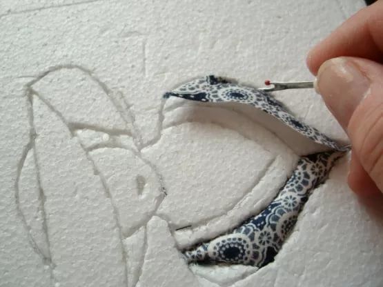 Начинаещите в тази техника се насърчават да направят картини "кинусайга" от плат върху пяна. Тъканта се прибира със скалпел, пила за нокти или ножче за писане. Различни цветове се прибират в пяната с връх, като се отрязват излишните "опашки".