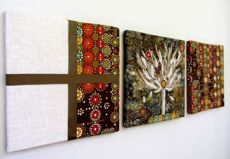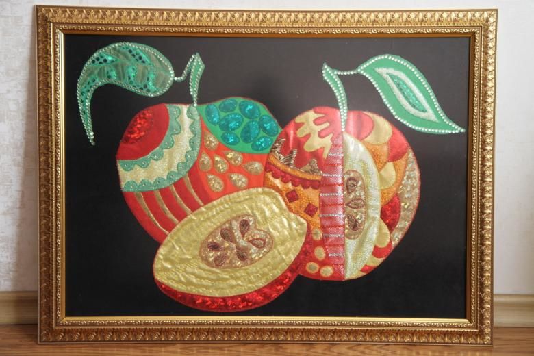 Готовите картини от плат могат да бъдат съживени с пайети и камъни, копчета и мъниста.