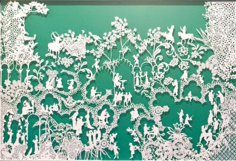 - скица на хартия се копира, за да се изреже на форми (отделни фрагменти);