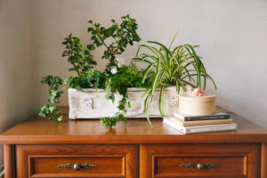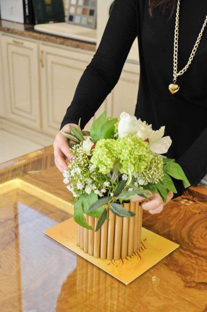 Коритата за цветя се изработват от различни аксесоари, като остарели свещници, полилеи и метални или керамични съдове.
