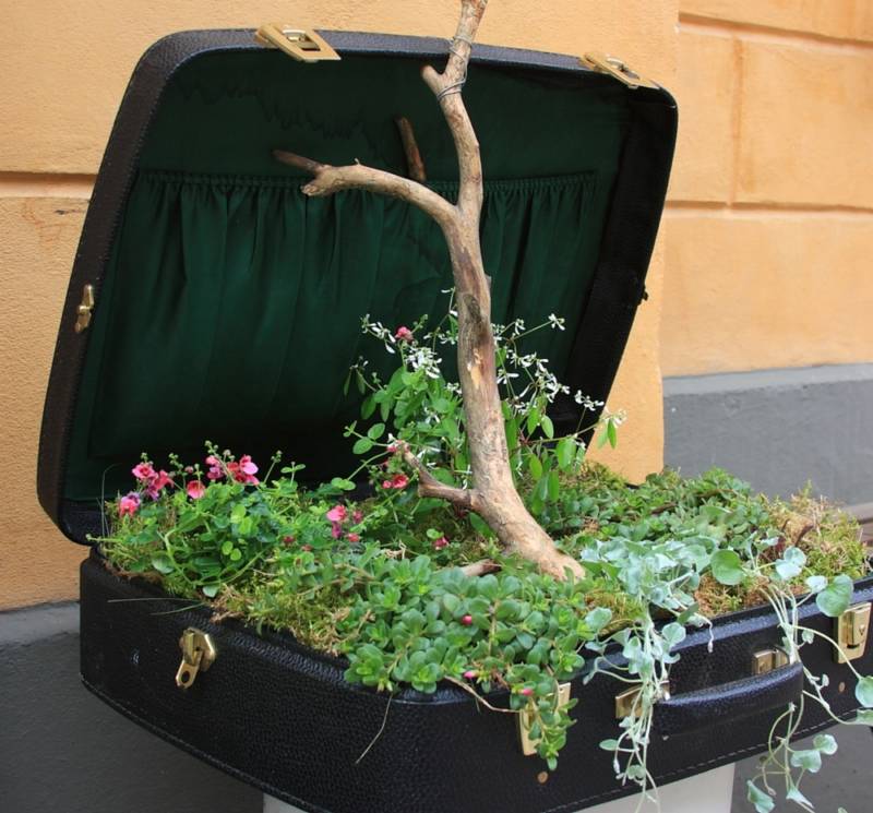 Изработването на необичайни детайли за градината или дома от стари пътнически куфари е завладяващ процес.