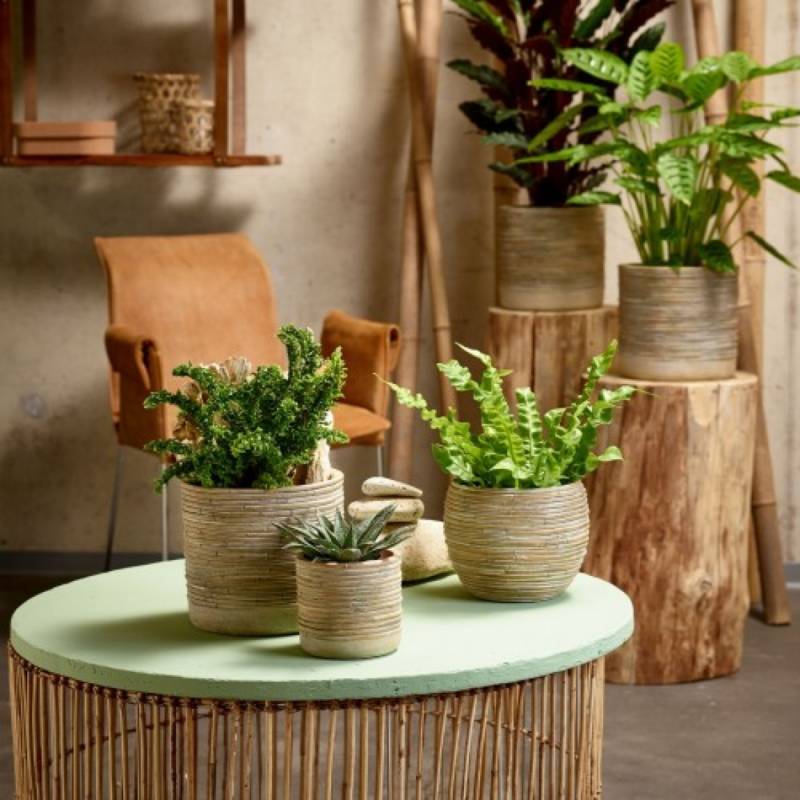 Друг вариант е да използвате квадратни или кръгли дървени ленти или бамбук. В този случай те се монтират вертикално, около квадратно или кръгло дъно. Отделните парчета могат да бъдат прикрепени с тел или декоративна плетка, а след това в тях могат да се поставят саксии с растения.