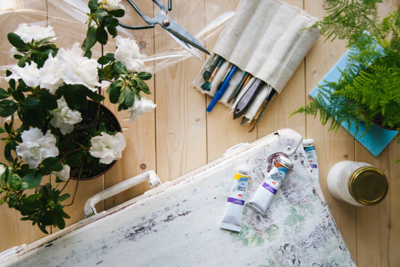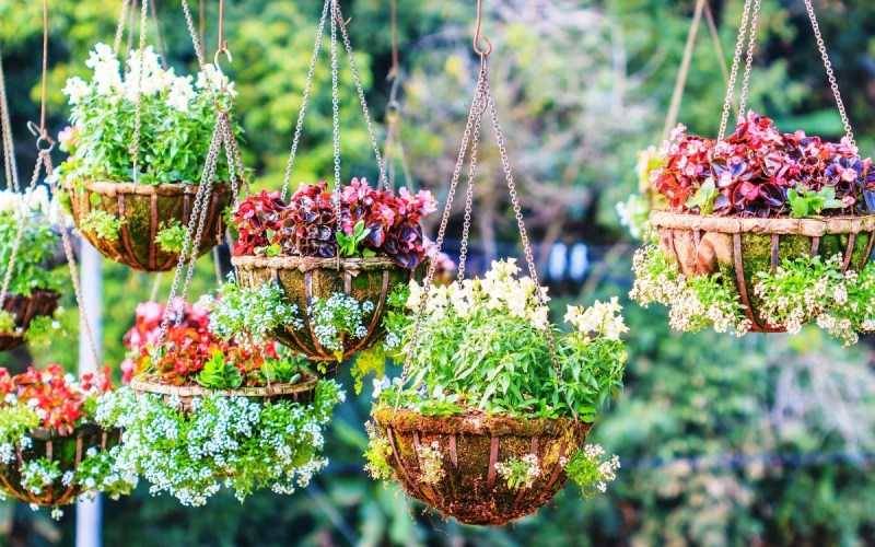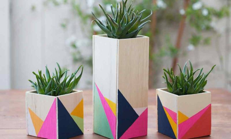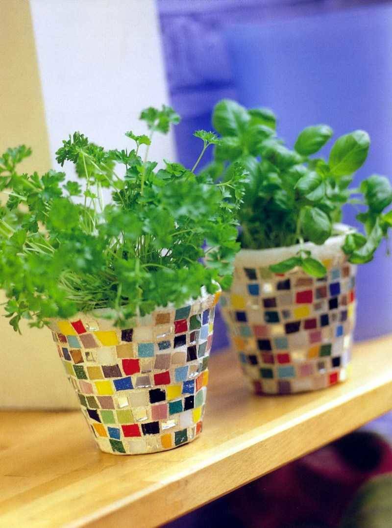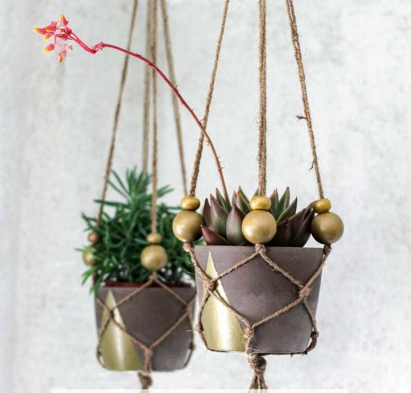 Стенни или висящи саксии могат да се направят от боядисани свещници и полилеи, като абажурите им се използват като саксии за цветя. Можете да направите оригинален и мобилен контейнер за засаждане от стара саксия или гърне и да го украсите с боя.