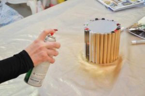 Външната част често се завършва с декупаж или декоративни детайли и след това се фиксира с водоустойчив лак.