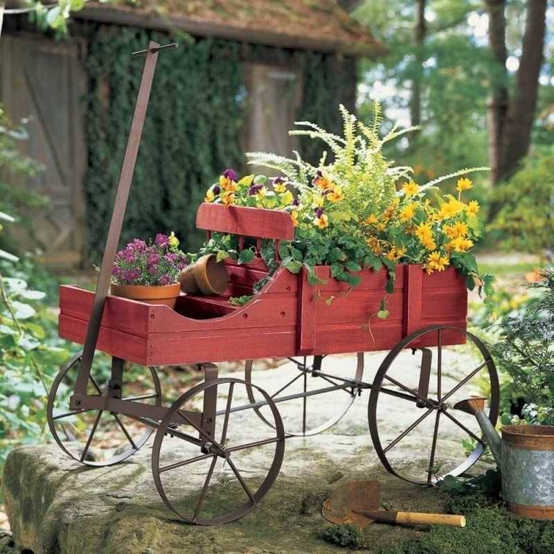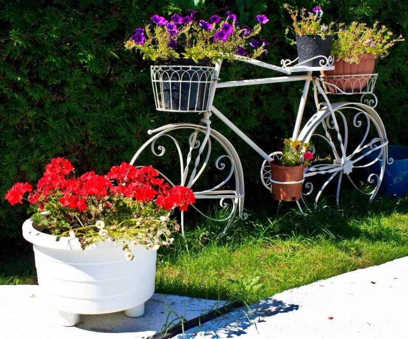 Често можете да видите стари каруци или детски велосипеди като поставки за саксии в задните дворове или градините.