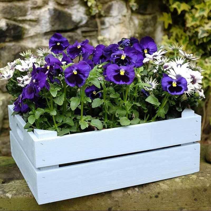 Боядисайте кутиите в различни атрактивни цветове и ги закрепете към дървена, пластмасова или метална основа, а след това засадете в тях декоративни цветя.